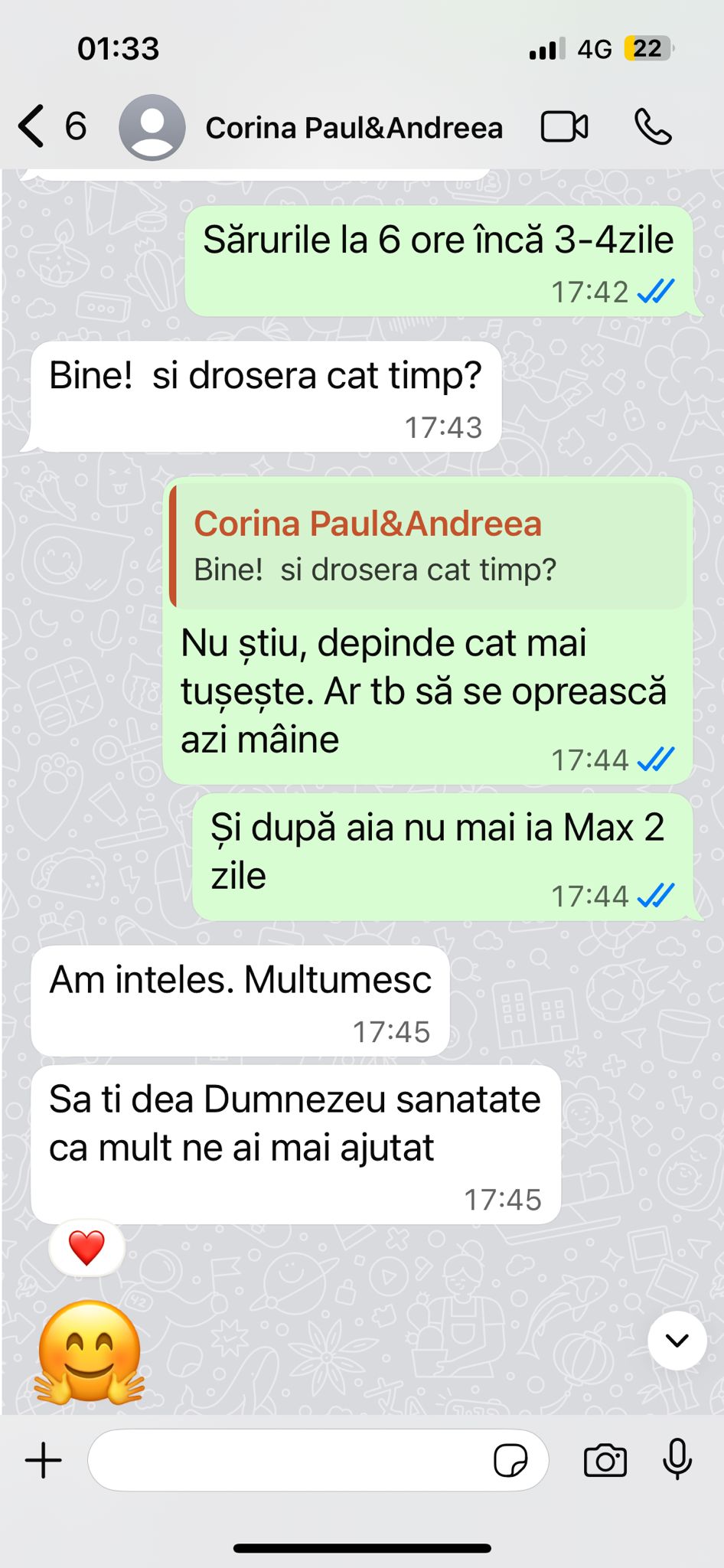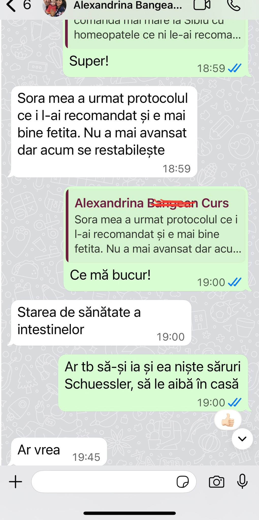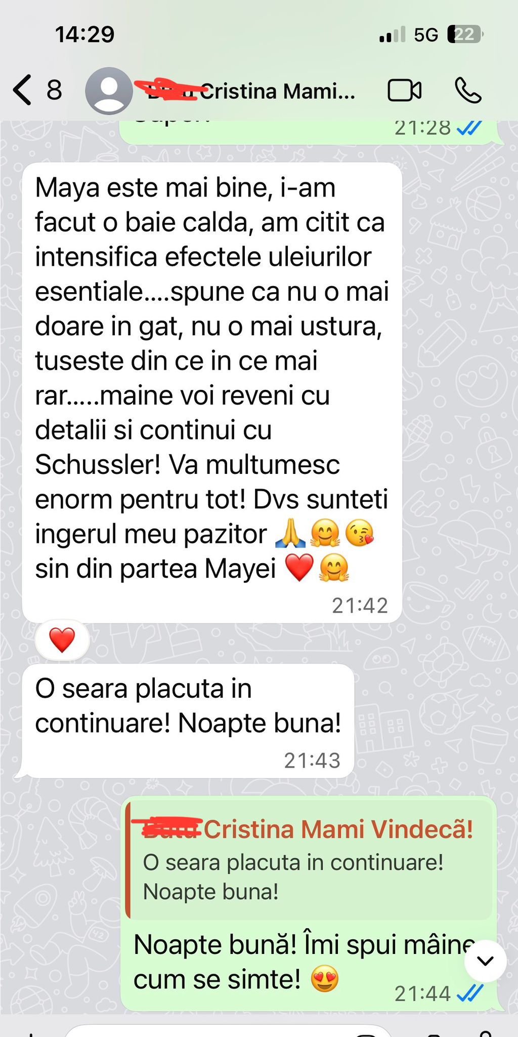 Din dorința de a împărtăși această experiență și cunoștință, am creat cursul „Mami Vindecă”, prin care am ajutat deja peste 1500 de mămici să gestioneze eficient și natural cele mai frecvente afecțiuni respiratorii ale copiilor lor, folosind medicamente homeopate, săruri Schüssler și remedii naturale sigure.