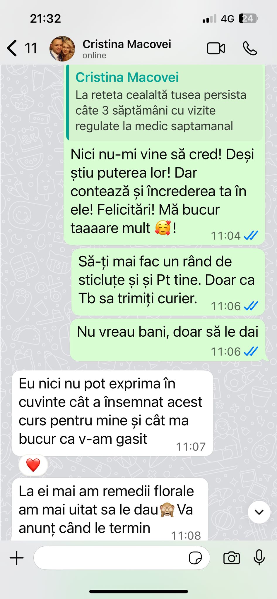 Rezultatul? Copiii mei n-au luat niciodată antibiotice, antipiretice sau alte siropuri chimice. S-au vindecat rapid, fără reacții adverse, iar eu am câștigat liniștea și încrederea că pot gestiona sănătatea lor corect.